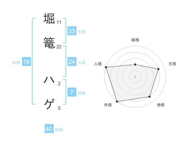 堀篭 ハゲさんの外格は16画の5点!