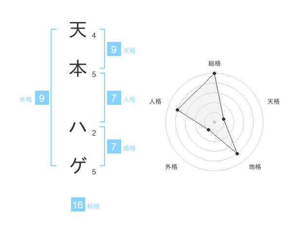天本 ハゲさんを姓名の画数から五運を鑑定