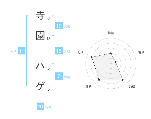 寺園 ハゲさんを姓名の画数から五運を鑑定