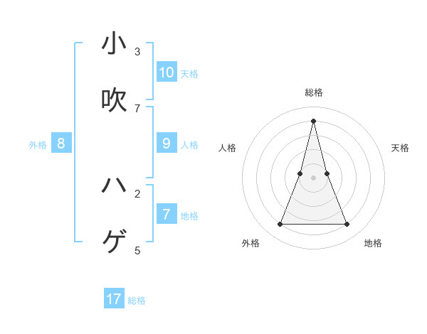 小吹 ハゲさんを姓名の画数から五運を鑑定