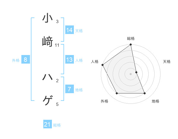 小﨑 ハゲさんの総格は21画の5点!