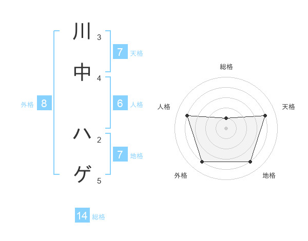 川中 ハゲさんを姓名の画数から五運を鑑定