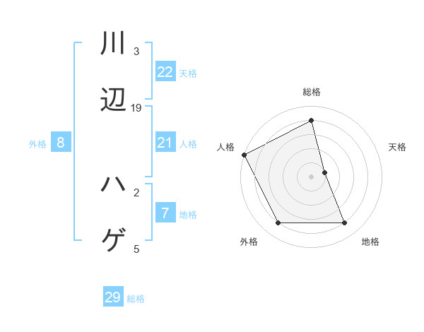 川辺 ハゲさんの天格は22画の1点