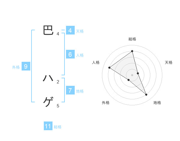 巴 ハゲさんを姓名の画数から五運を鑑定