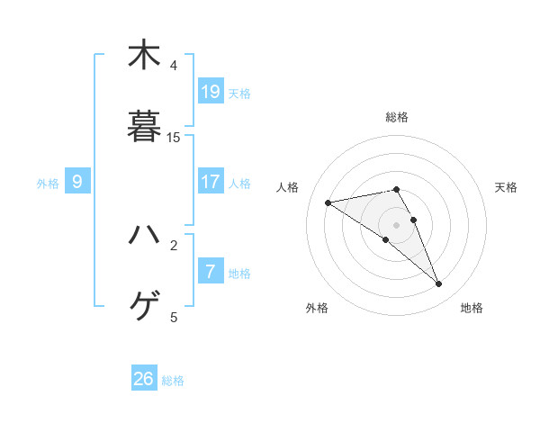 木暮 ハゲさんの天格は19画の1点!