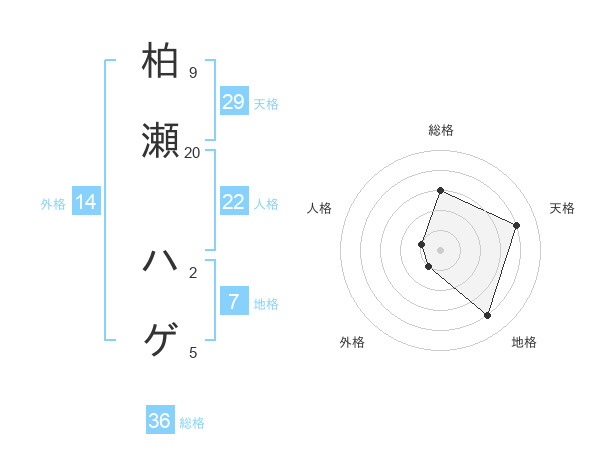 柏瀬 ハゲさんの天格は29画の4点!