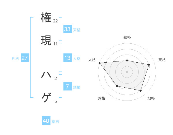 権現 ハゲさんの天格は33画の4点!