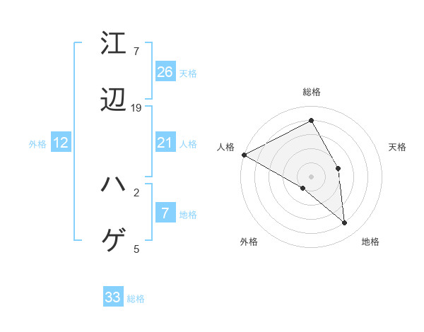 江辺 ハゲさんの外格は12画の1点!