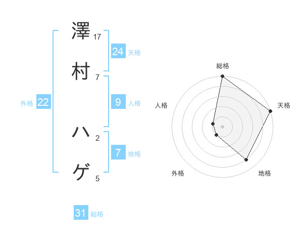 澤村 ハゲさんを姓名の画数から五運を鑑定