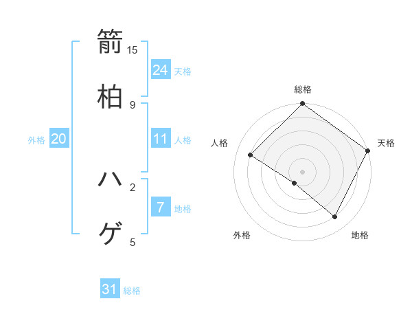 箭柏 ハゲさんを姓名の画数から五運を鑑定