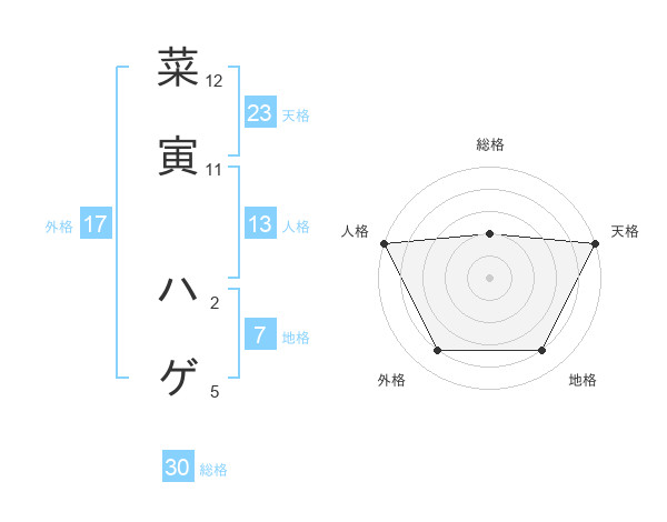 菜寅 ハゲさんの天格は23画の5点!