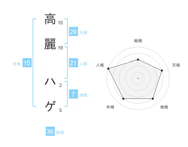 高麗 ハゲさんの天格は29画の4点!