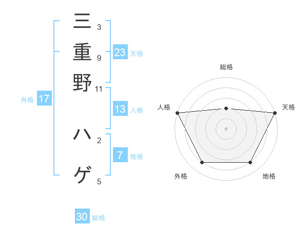三重野 ハゲさんを姓名の画数から五運を鑑定