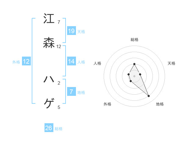 江森 ハゲさんの総格は26画の2点!