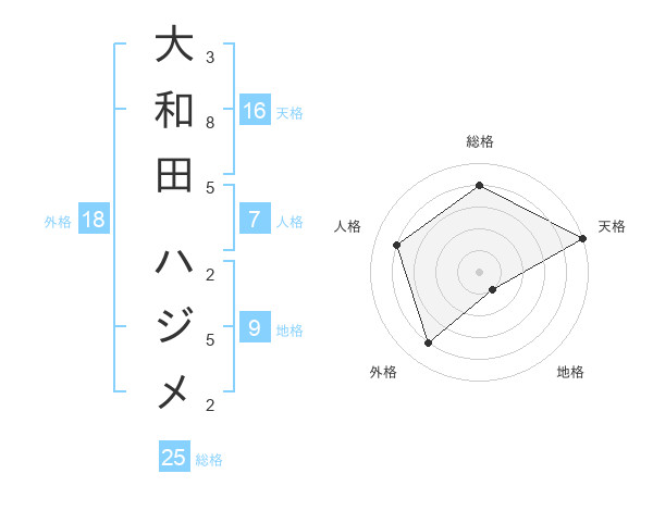 大和田 ハジメさんを姓名の画数から五運を鑑定
