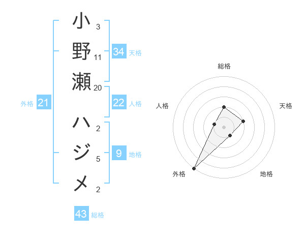 小野瀬 ハジメさんを姓名の画数から五運を鑑定