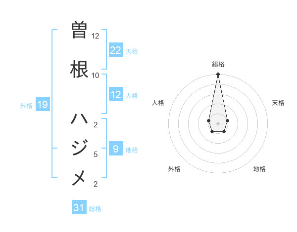 曽根 ハジメさんを姓名の画数から五運を鑑定