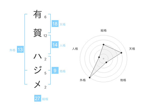有賀 ハジメさんを姓名の画数から五運を鑑定