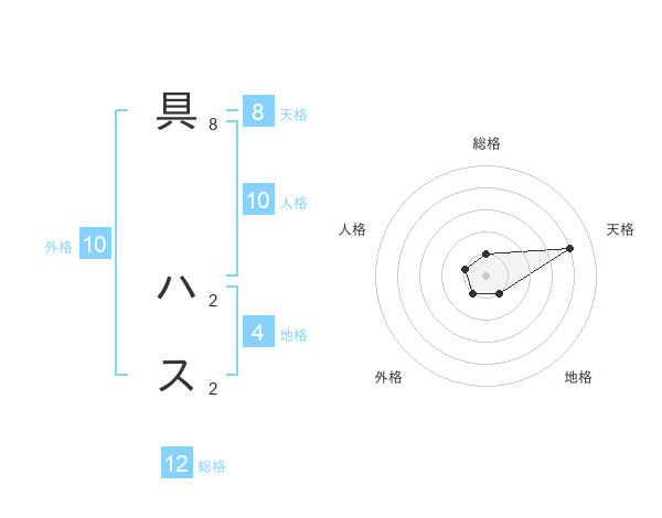 具 ハスさんの総格は12画の1点!