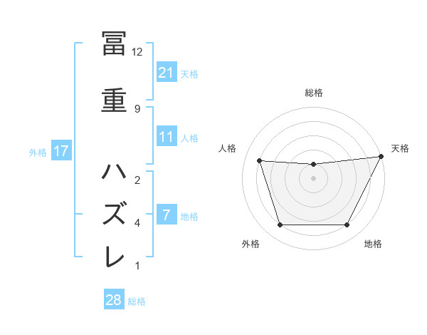 冨重 ハズレさんの外格は17画の4点!