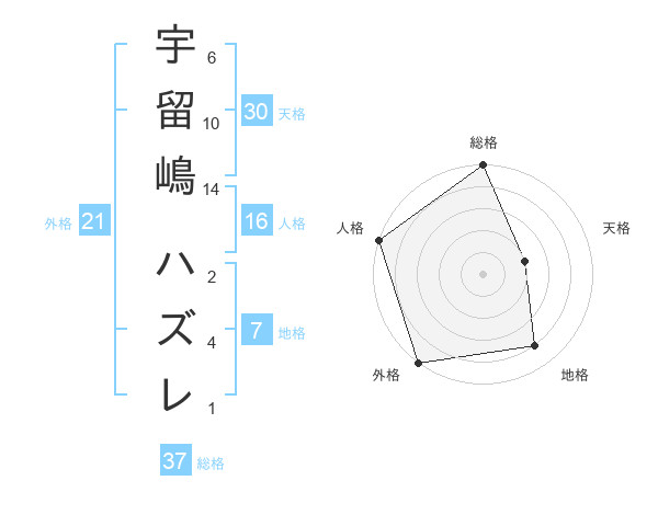 宇留嶋 ハズレさんを姓名の画数から五運を鑑定