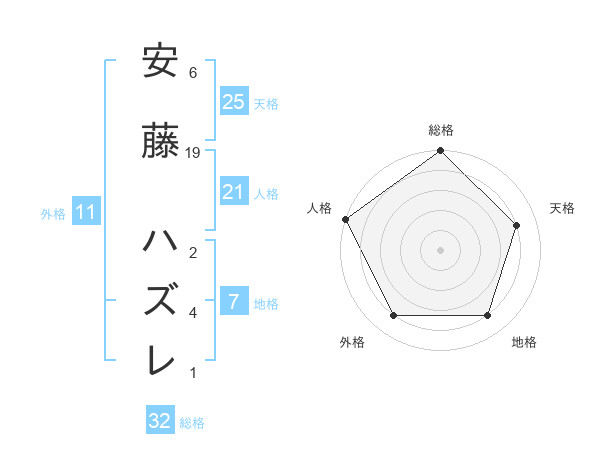 安藤 ハズレさんの総格は32画の5点!