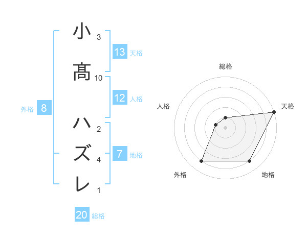 小髙 ハズレさんの天格は13画の5点!