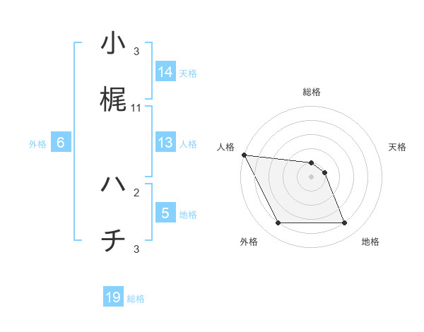 小梶 ハチさんの地格は5画の4点!