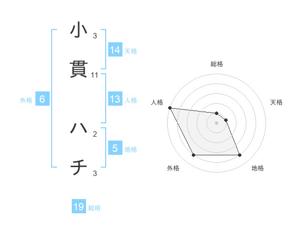 小貫 ハチさんの地格は5画の4点!
