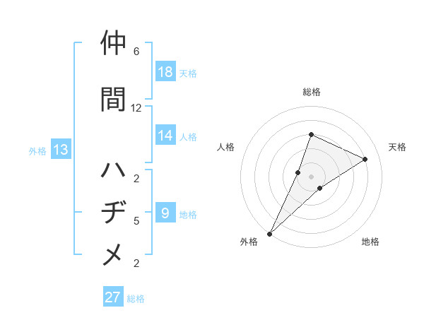 仲間 ハヂメさんの外格は13画の5点!