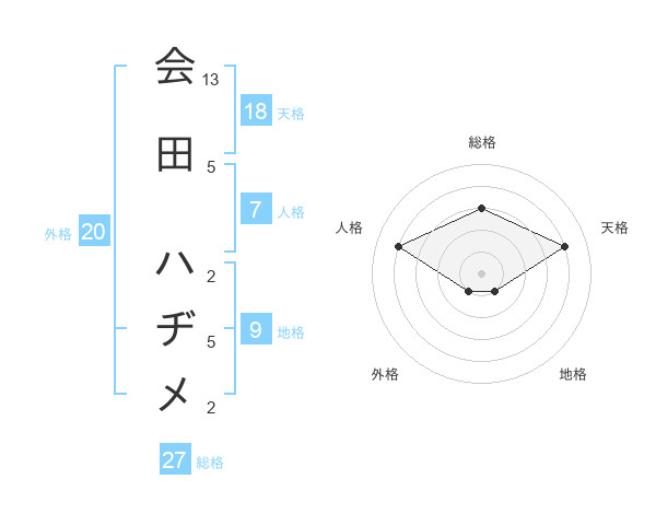 会田 ハヂメさんの総格は27画の3点