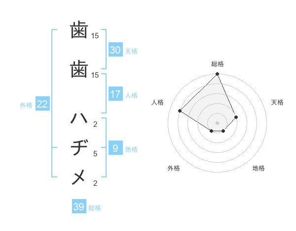 歯歯 ハヂメさんの総格は39画の5点!