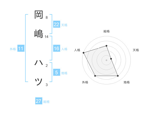 岡嶋 ハツさんを姓名の画数から五運を鑑定