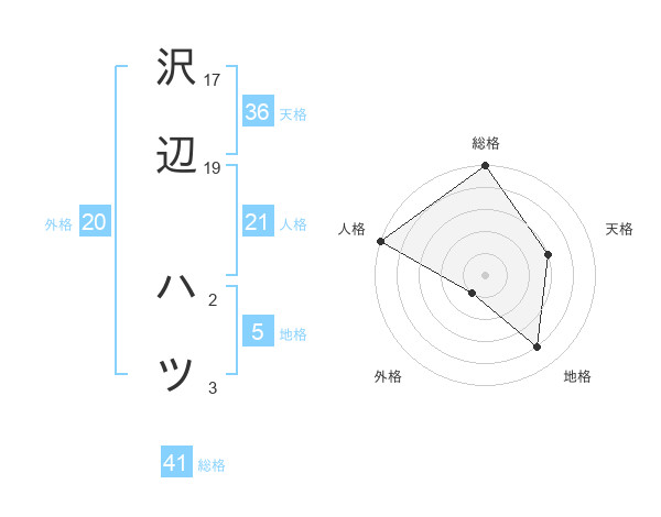 沢辺 ハツさんの総格は41画の5点!