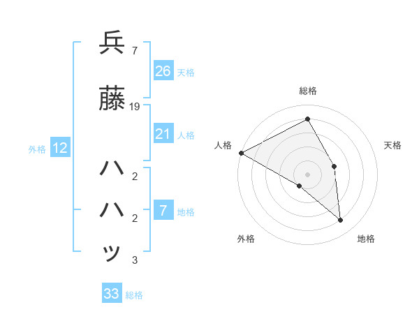 兵藤 ハハッさんを姓名の画数から五運を鑑定