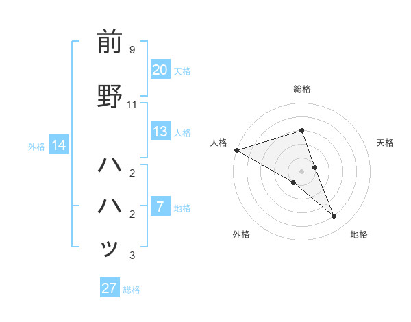 前野 ハハッさんの総格は27画の3点!