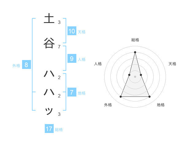 土谷 ハハッさんを姓名の画数から五運を鑑定