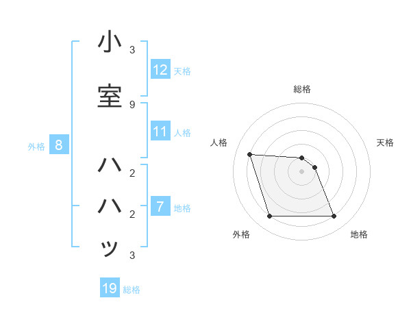 小室 ハハッさんを姓名の画数から五運を鑑定