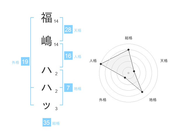 福嶋 ハハッさんを姓名の画数から五運を鑑定