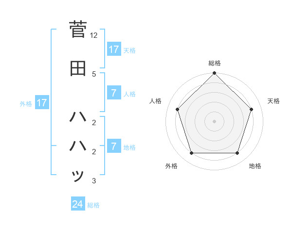 菅田 ハハッさんを姓名の画数から五運を鑑定