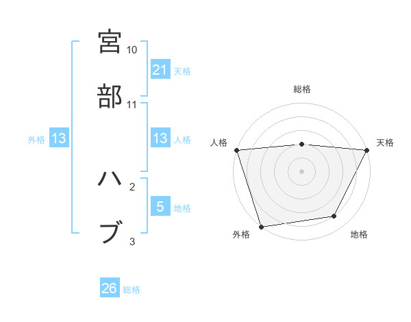 宮部 ハブさんを姓名の画数から五運を鑑定