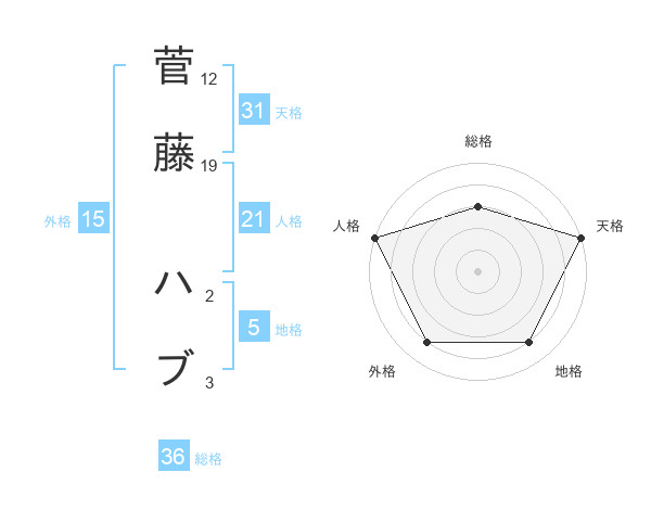 菅藤 ハブさんを姓名の画数から五運を鑑定