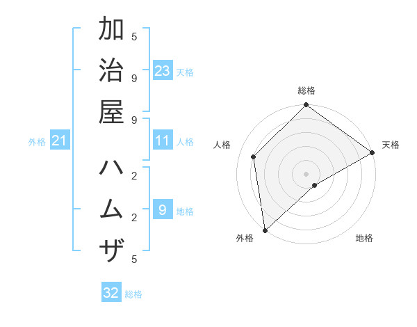 加治屋 ハムザさんの総格は32画の5点