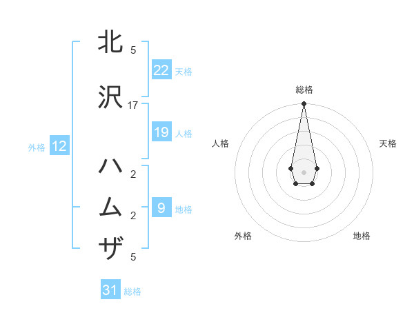 北沢 ハムザさんの総格は31画の5点!