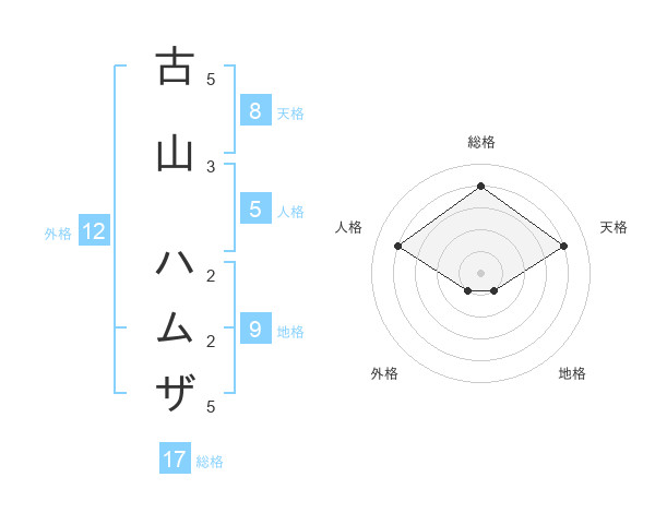 古山 ハムザさんを姓名の画数から五運を鑑定