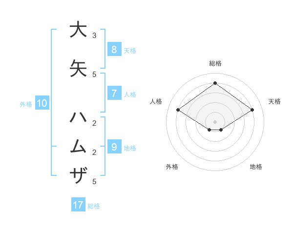 大矢 ハムザさんを姓名の画数から五運を鑑定