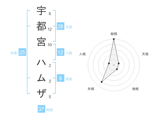 宇都宮 ハムザさんを姓名の画数から五運を鑑定