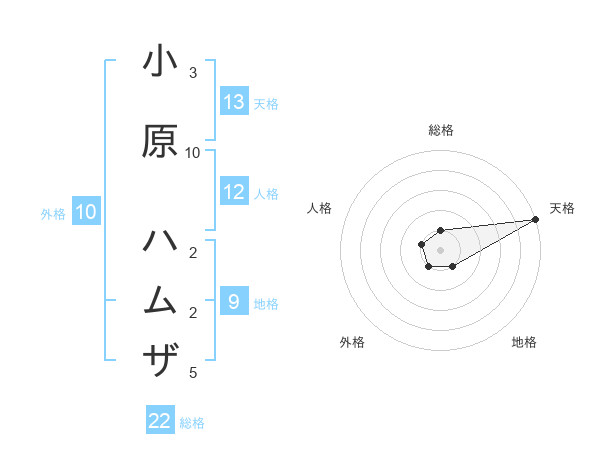 小原 ハムザさんを姓名の画数から五運を鑑定