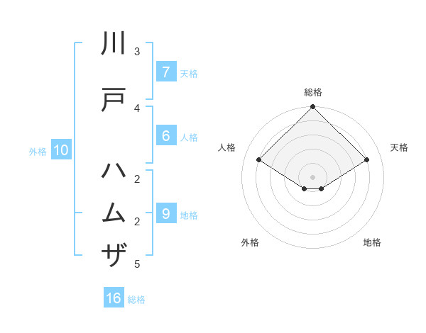 川戸 ハムザさんの総格は16画の5点!