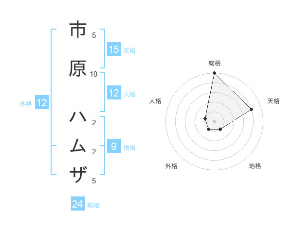 市原 ハムザさんの総格は24画の5点!